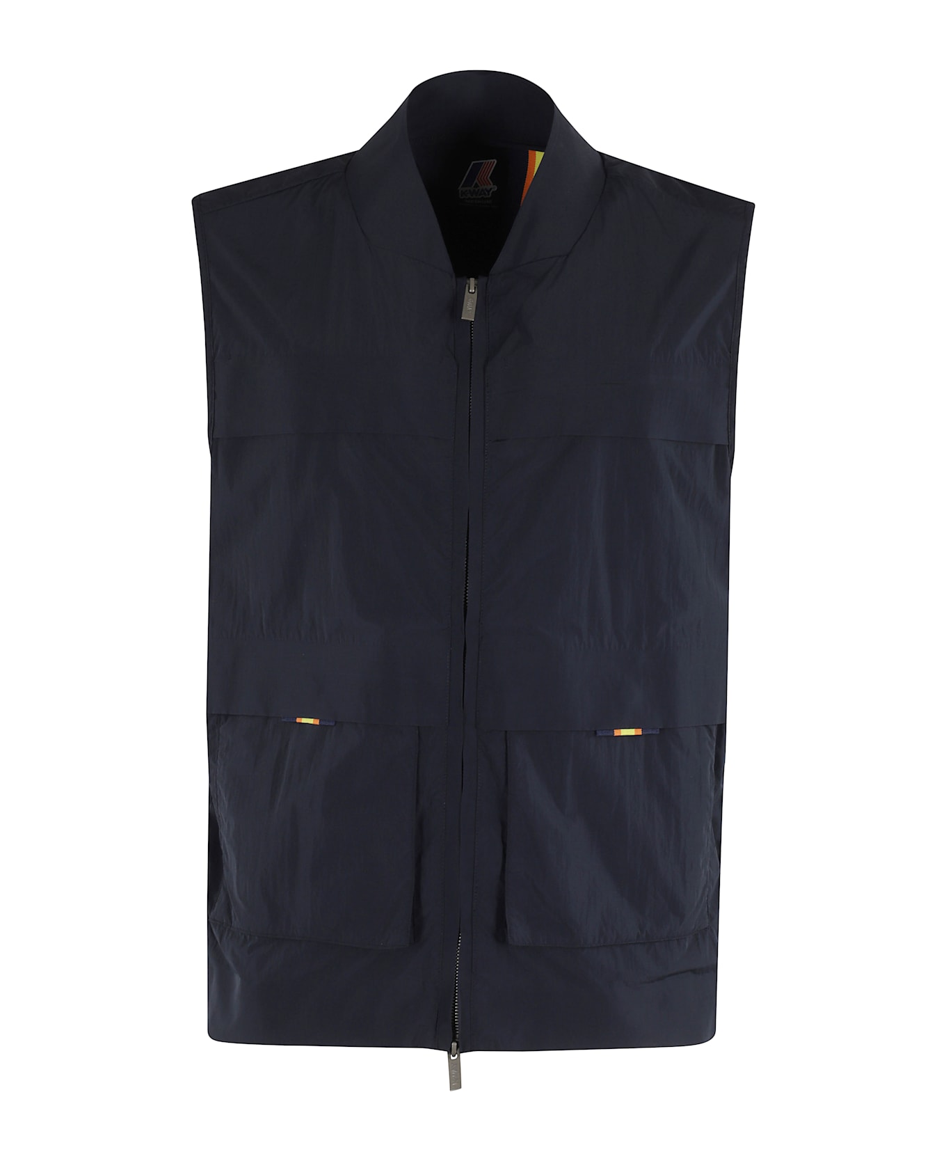 Erhin vest - K-Way - Blue color - Nylon fabric - Collar - Front flap and button pockets - Adjustable drawstring hem - Front zipper closure - Regular fit.