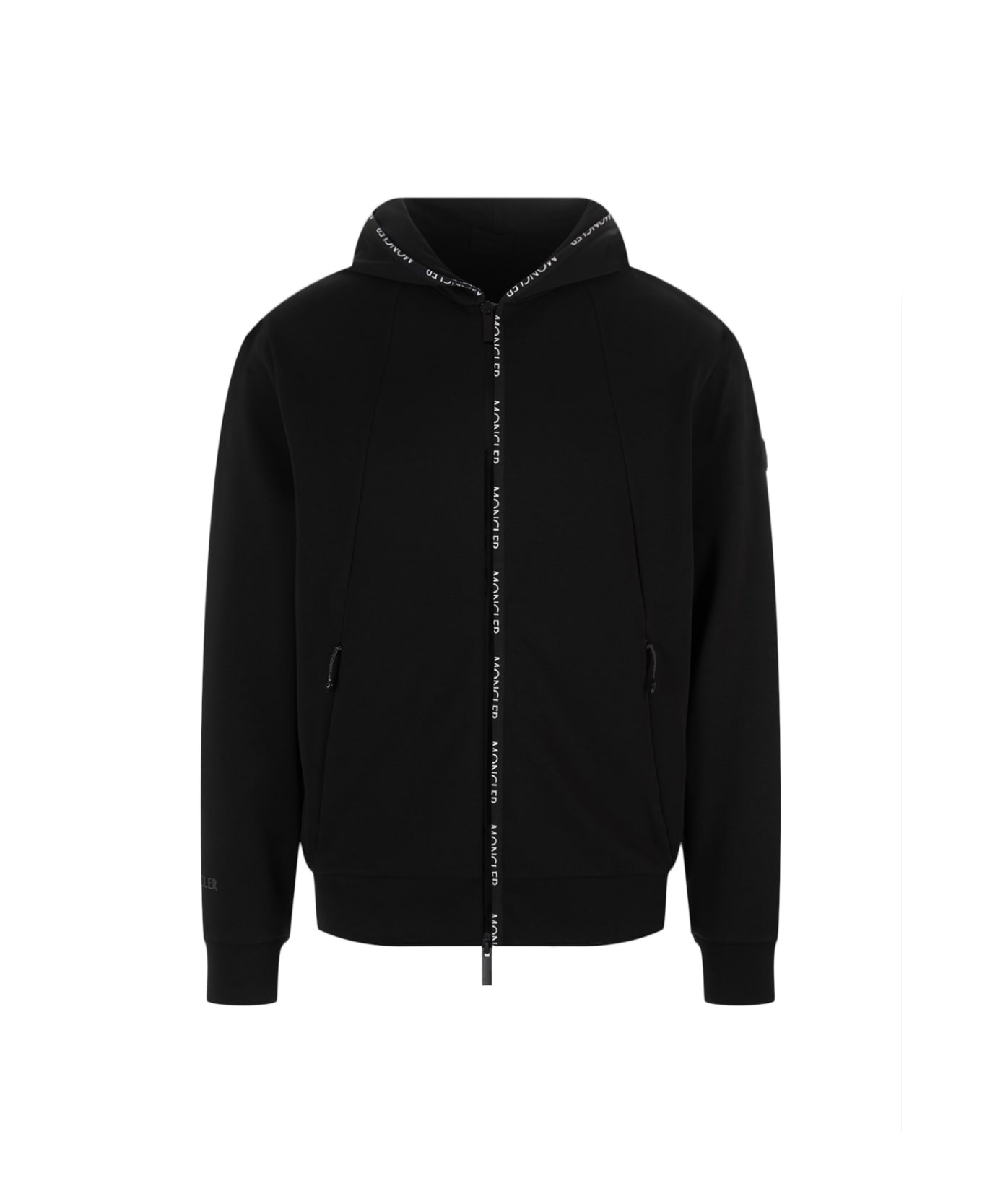 Moncler black hoodie made of cotton fleece and embellished with a discreet logoed insert along the zip fastening. This loose fitting hoodie features a silicone logo, zipped pockets, side slits and a double-slider front zip fastening.