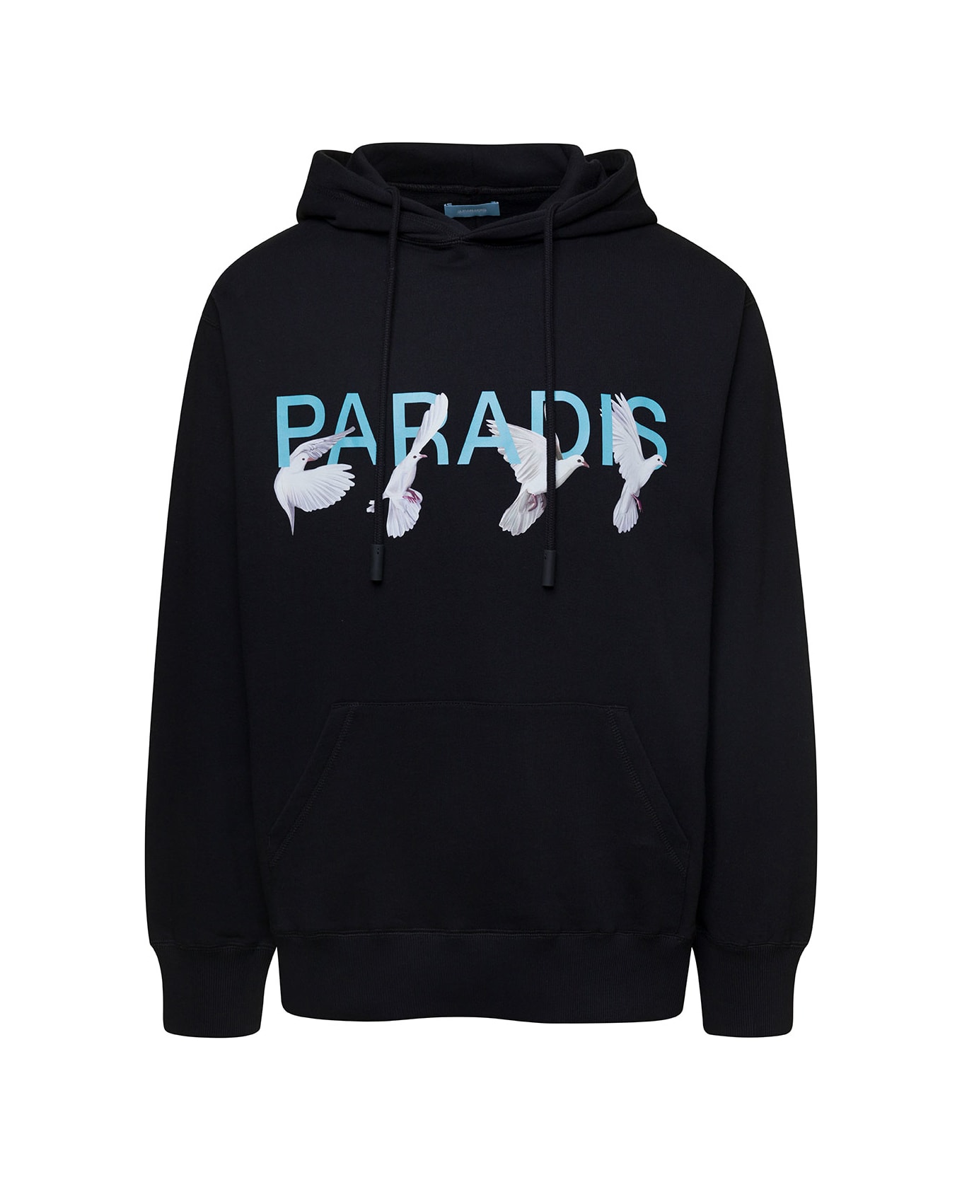 Hoodie Long sleeves Ribbed cuffs and hem Printed logo with doves on the chest Black Cotton Regular fit