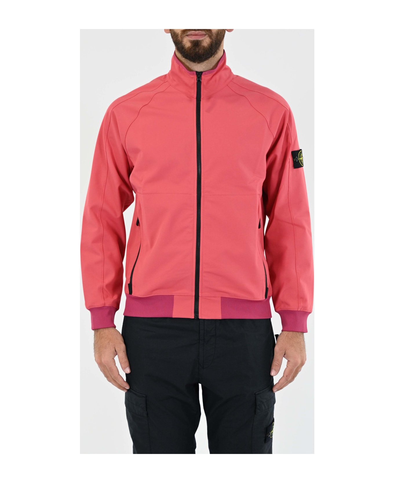 jacket in stretch nylon technical fleece. style stand up collar, edged in stretch nylon tape. raglan shoulders. standing pockets with hidden zip fastening. stone island badge on left sleeve. ribbed cuffs and bottom. zip closure. composition 88% polyamide 12% elastane