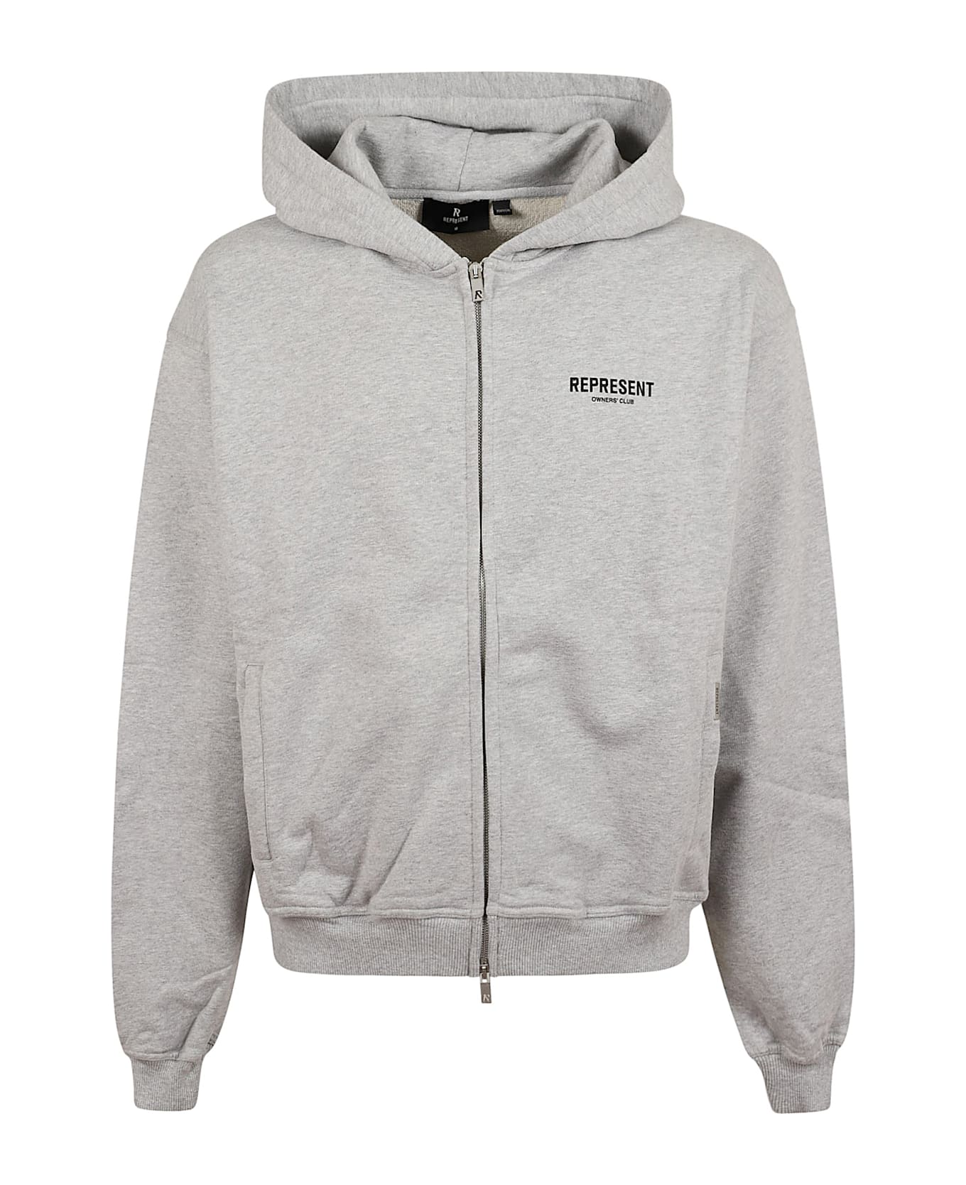 Classic textured sweatshirt in cotton jersey BY REPRESENT. Double slider zip fastening; hood; dropped shoulders; long sleeves; ribbed cuffs and hem; welt pockets. Features logo print on the front and back.