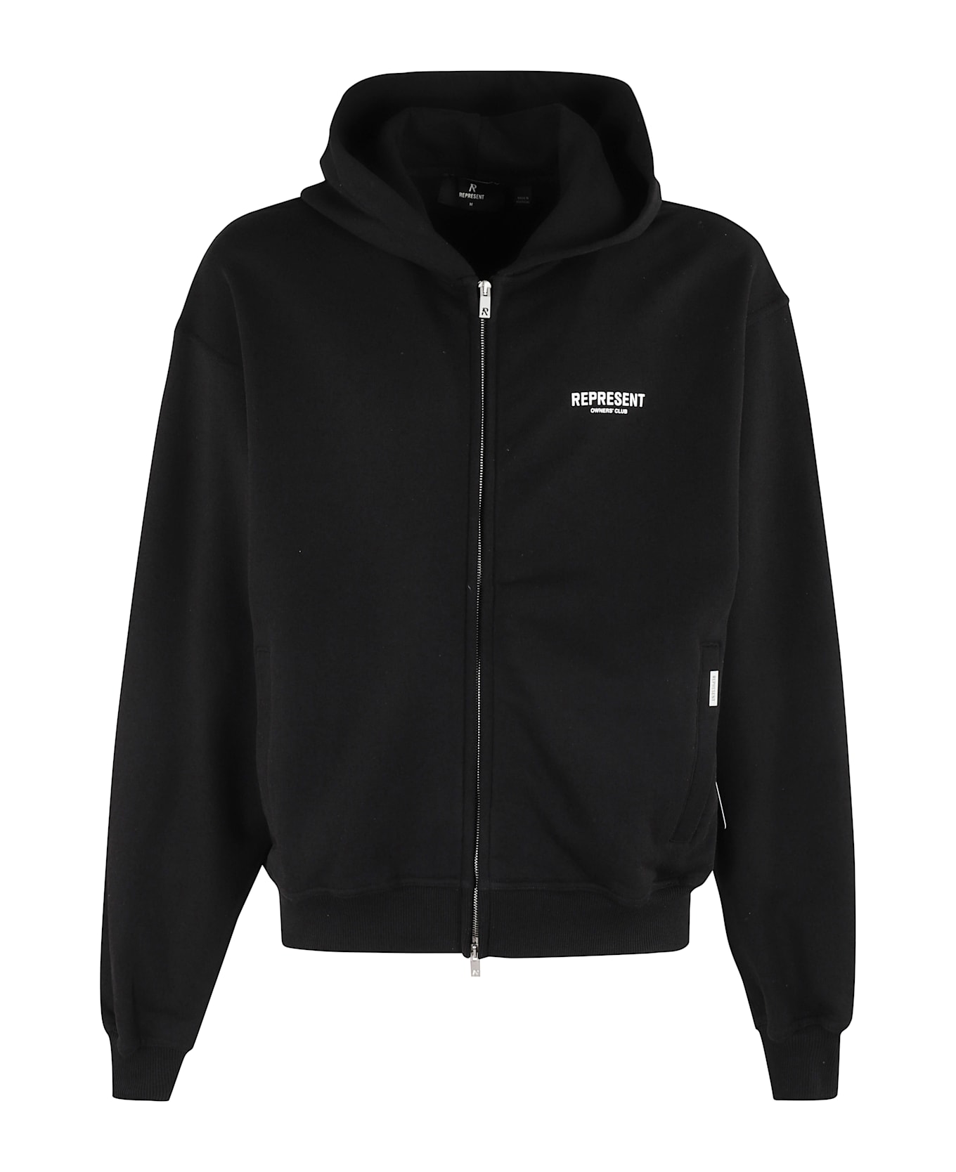 Owners Club Zip Sweatshirt - Represent - Black color - Hoodie - Long sleeve with dropped shoulder - Flush side pockets - Printed logo on chest and back - Front zipper closure - Over fit.