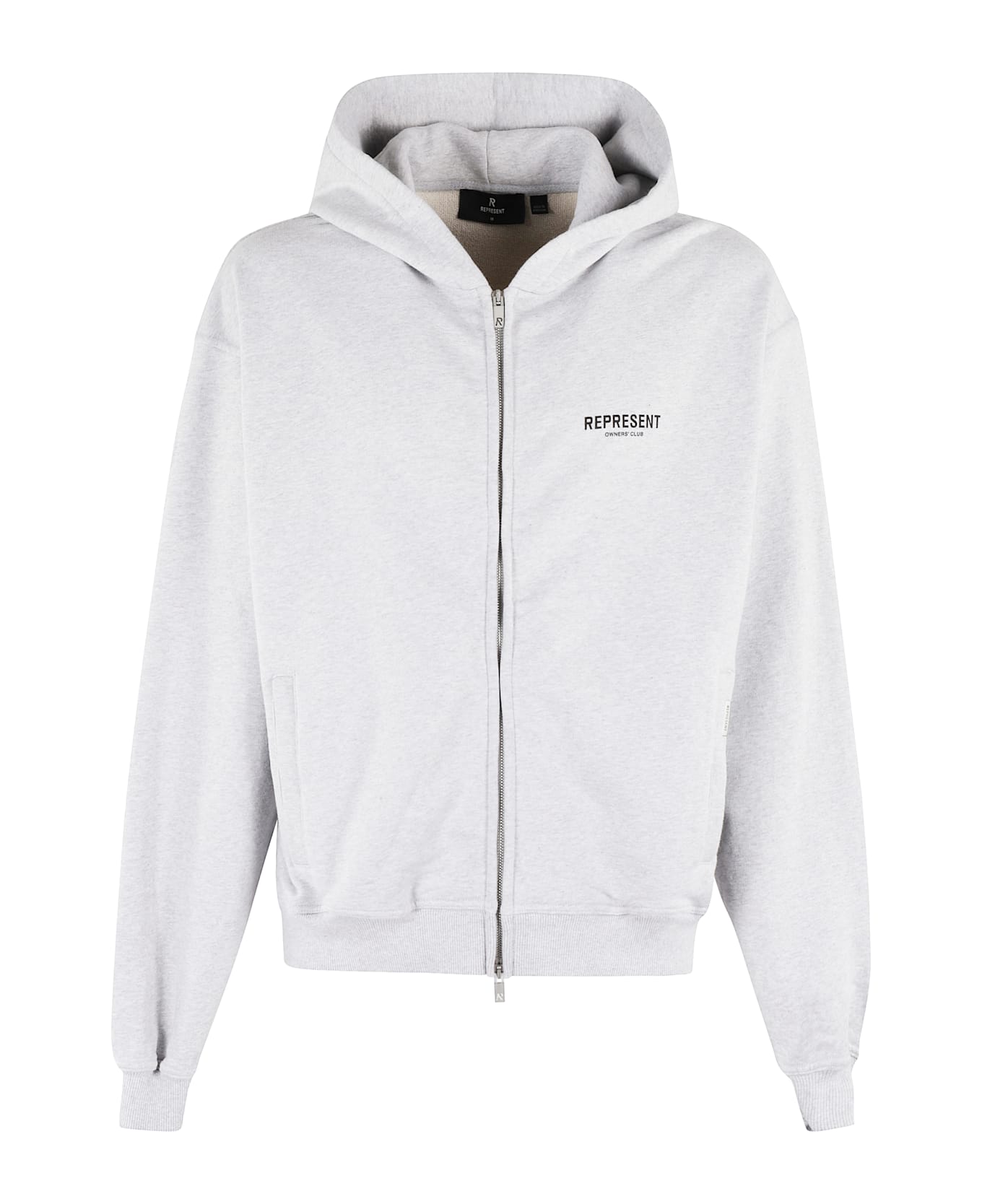 Owners Club Zip Sweatshirt - Represent - Gray color - Hoodie - Long sleeve with dropped shoulder - Flush side pockets - Printed logo on chest and back - Front zipper closure - Over fit.