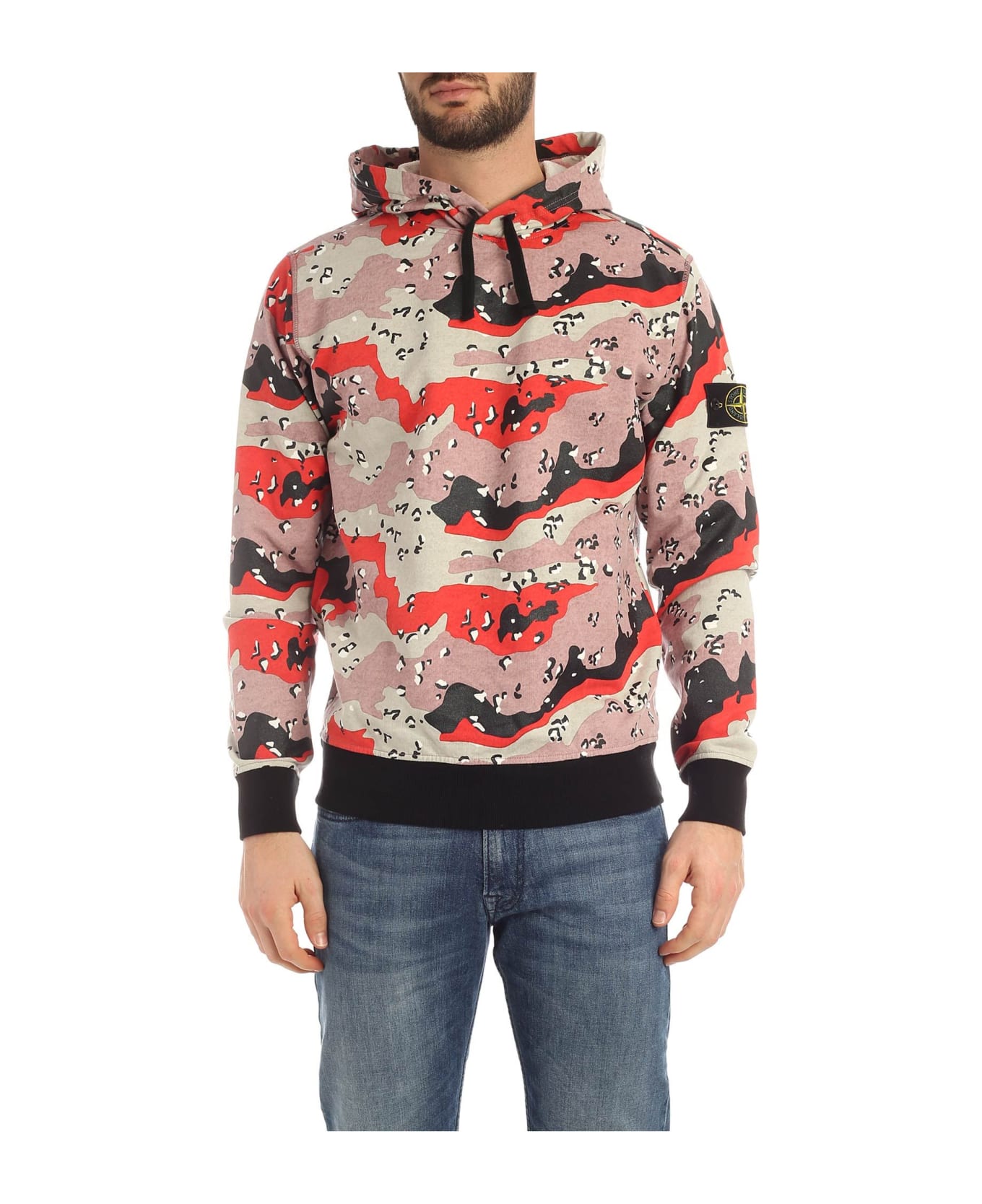 Desert Camo Hoodie from Stone Island: Pink, red, black and white camou sweatshirt with hood. -fit the true size