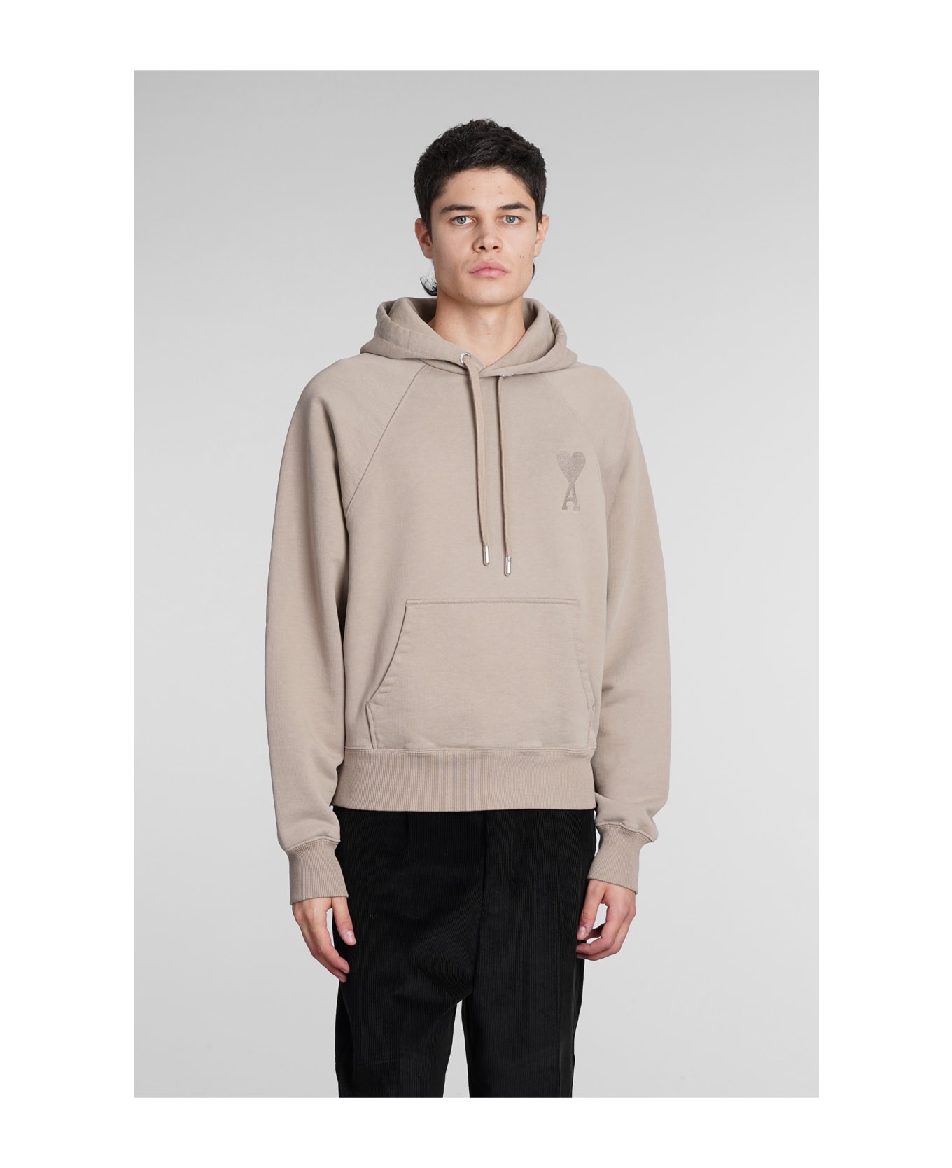Sweatshirt in beige cotton, hood with drawstring laces, long sleeves, kangaroo pockets, ribbed cuffs and bottom, embroidered logo on chest, 100% cotton, Made in Portugal, Model is 1. 83 and wears size M