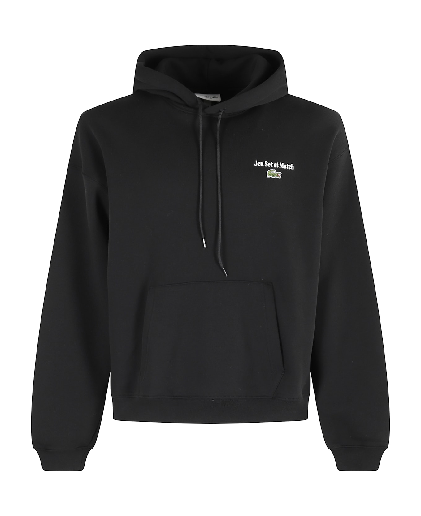 Sweatshirt - Lacoste - Black color - Adjustable hood with drawstring - Applied upper logo - Slogan print " jeu set match" upper - Long sleeves - Front pocket