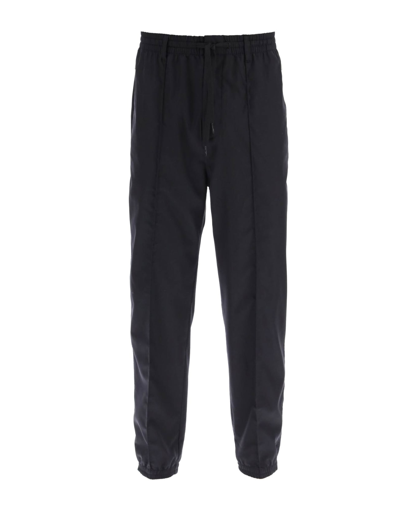 Emporio Armani drawstring pants made of stretch lyocell-blend satin for a urban take on the classic jogger design. Provided with side zip pockets and rear welt pockets, they are finished with elasticated waist and cuffs, front center leg pintuck, belt loops, and zip fly. The model is 187 cm tall and wears a size IT 48.