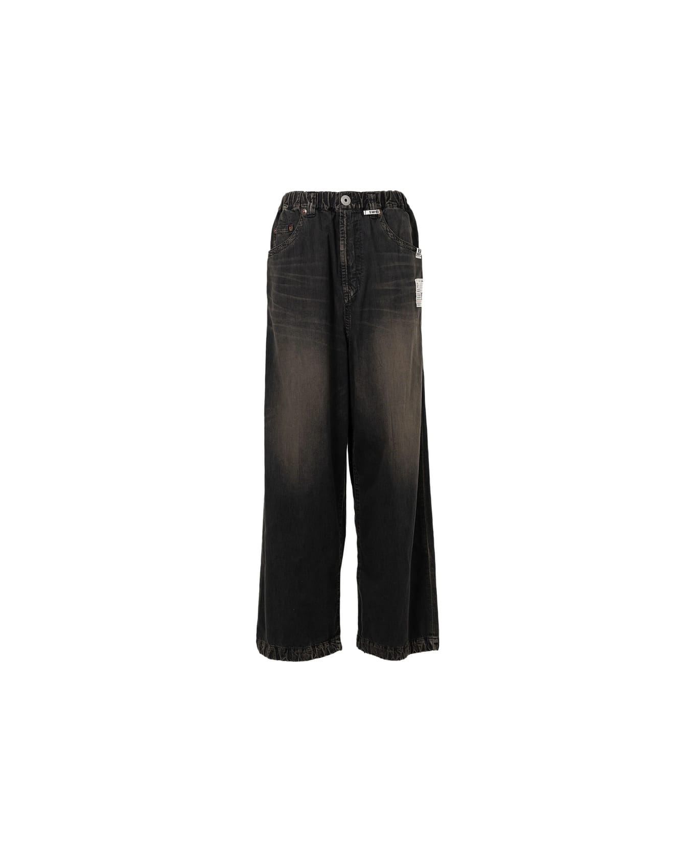 black elasticated waistband patch pocket label detail five pockets wide leg