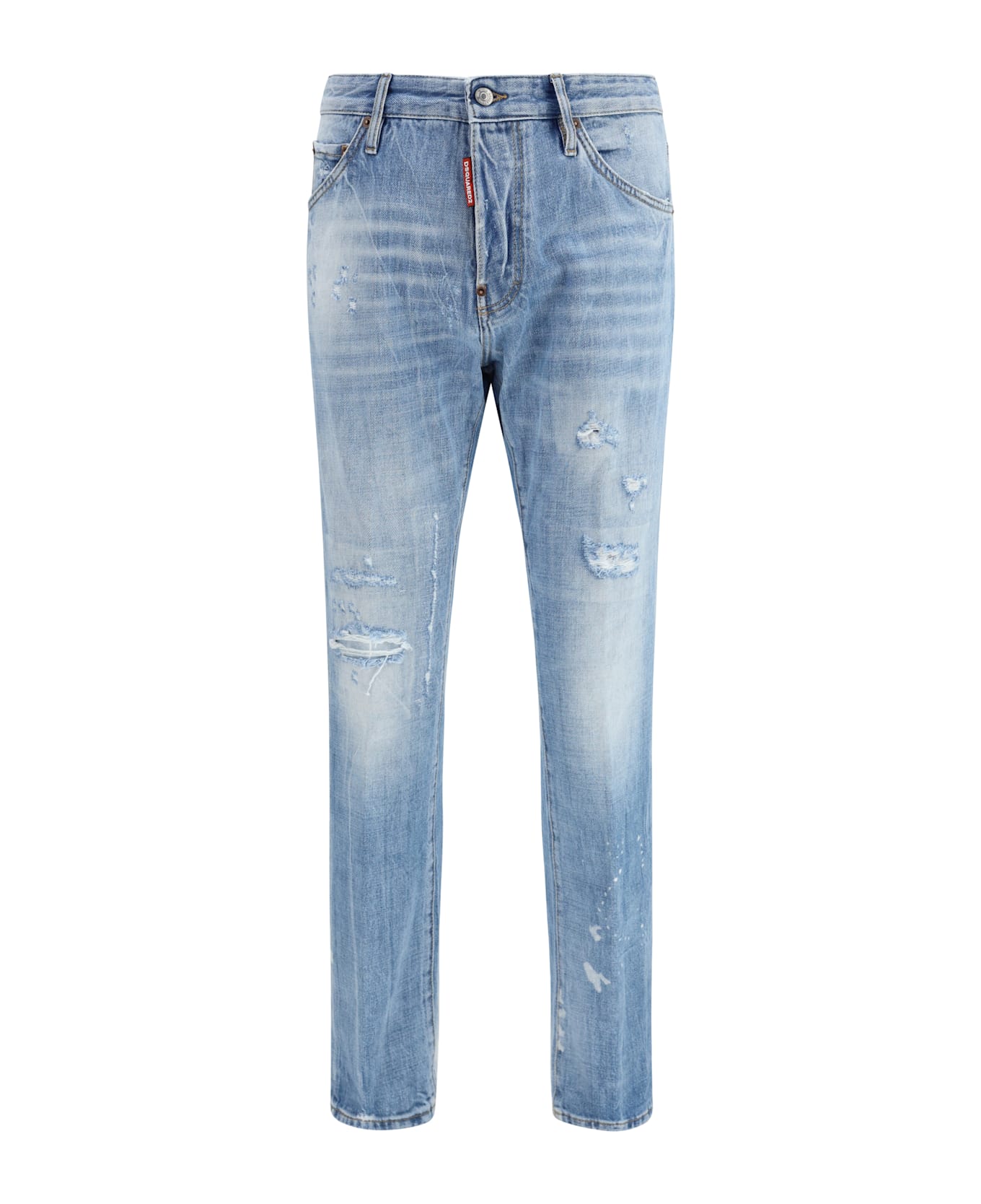 The teddy jeans with a lived-in effect by dsquared2 combine iconic style and contemporary character. made from stretch cotton denim with a medium wash, they feature a vintage treatment, destroyed details for a distinctive look. equipped with a concealed closure, five-pocket design, red label, and logo patch, they blend classic allure with a modern spirit, perfect for trendy casual outfits.