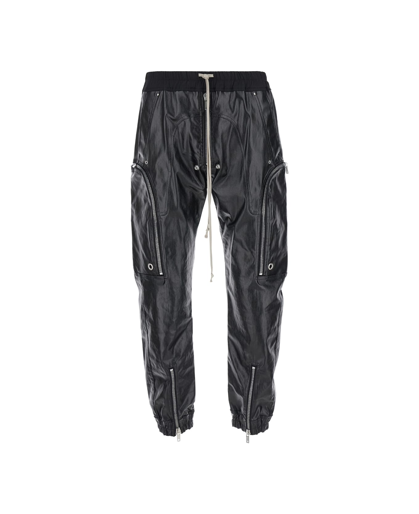 'bauhaus' Black Cargo Pants With Oversized Drawstring In Shiny Denim Man