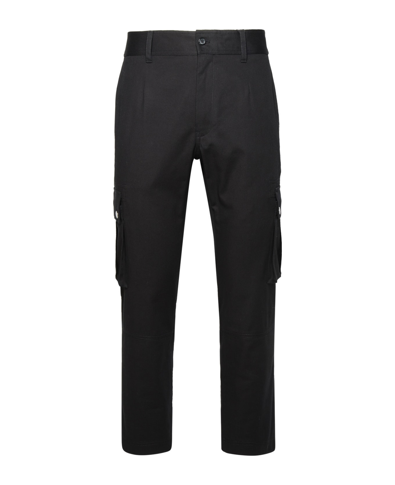 Regular fit, front zip and button closure, side pouch pockets, cargo pockets with flap and snap buttons down the leg, back patch pockets, logo metal plaque on the back Composition: 99% cotton, 1% elastane