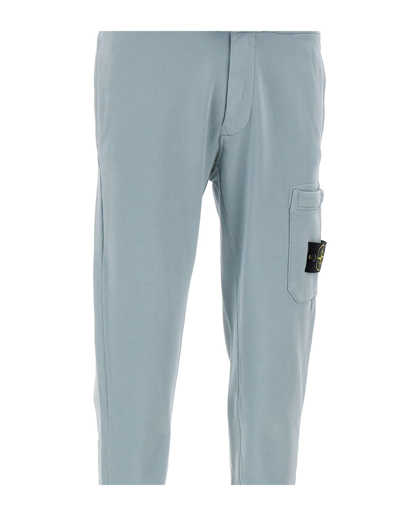 Men s Stone Island cotton jogger, sugar paper color, elasticated waist with matching drawstring, front zip fastening, two side slit pockets, one back pocket, one zip pocket and iconic logo patch applied on left leg, regular fit, ideal fabric for a comfortable and trendy look spring and summer.