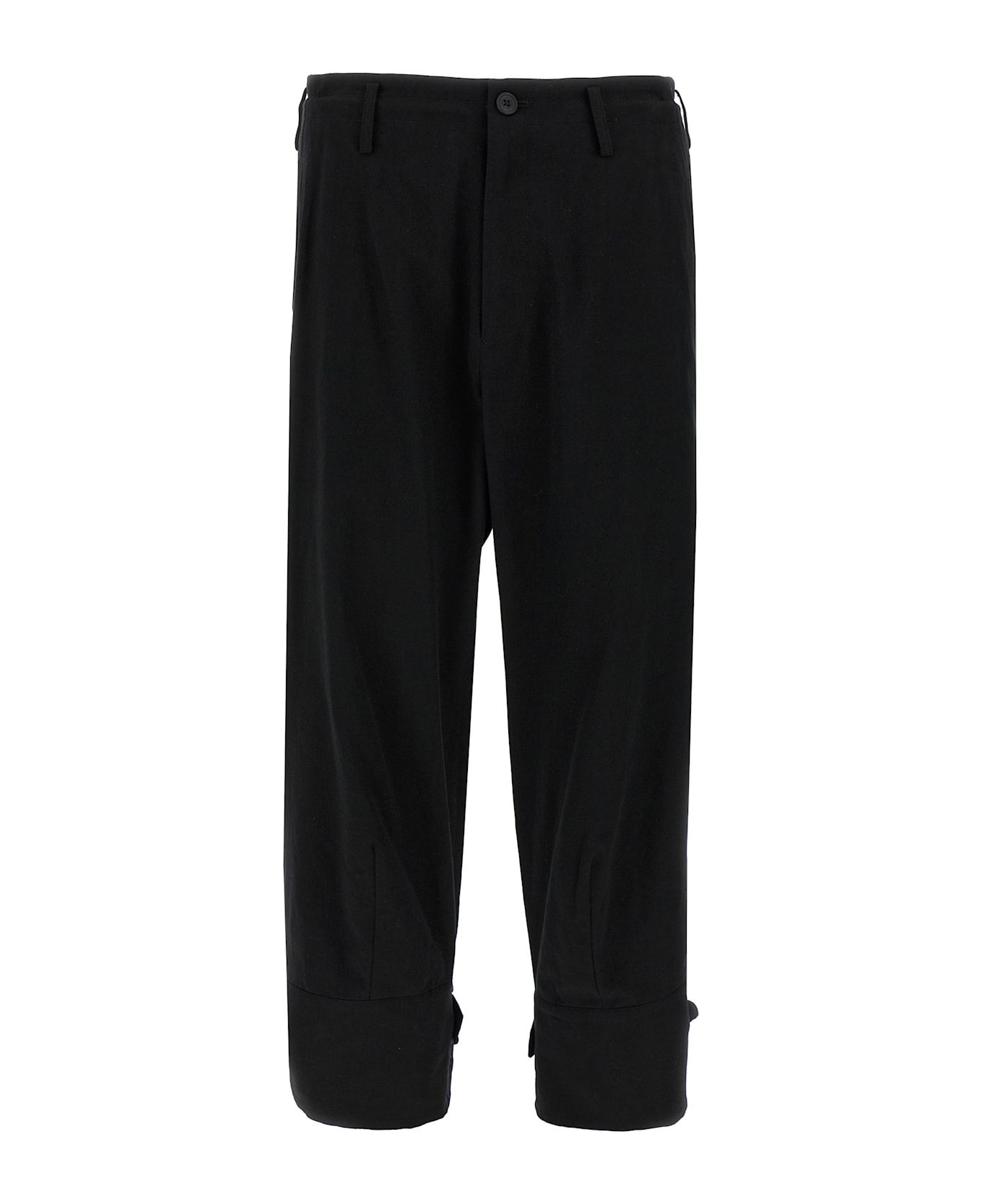 Cotton pants with print on the front and back, zip and button closure on the front, pockets, leg bottoms with adjustable straps. Composition: 90% cotton, 10% flax