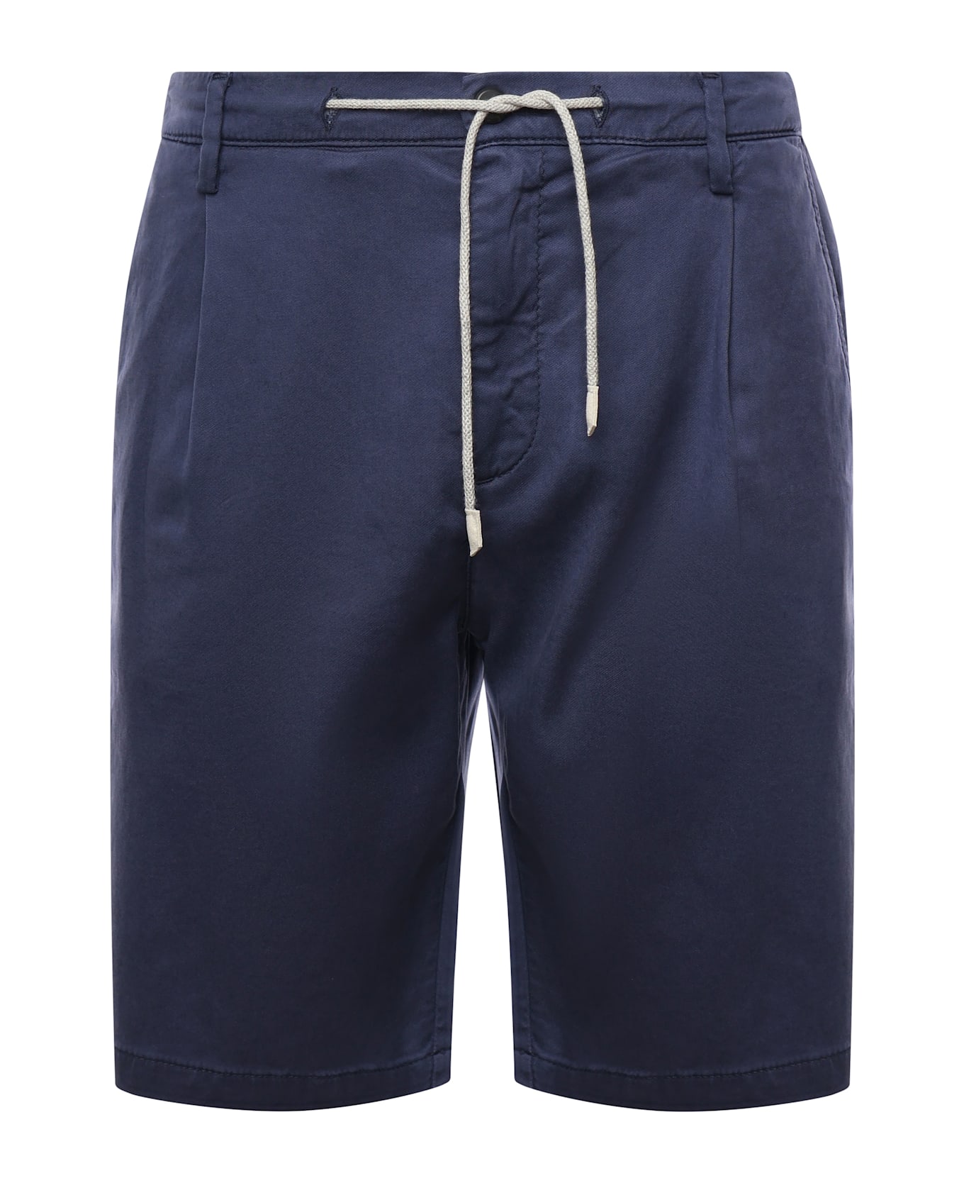 -Bermuda shorts with drawstring waist -Concealed button and zipper closure -Welt pockets -Size shown in photo is 34 -Made in Italy -Color: Blue Composition: 60% Lyocell, 39% Cotton, 1% Elastane