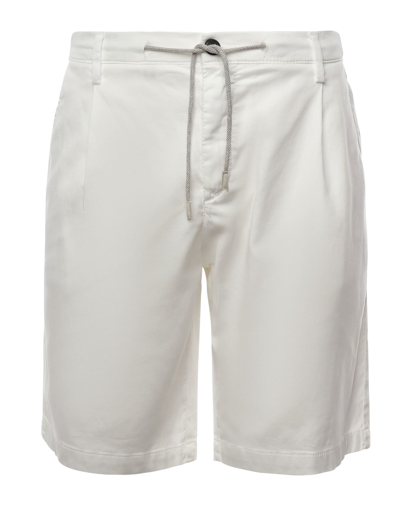 -Bermuda shorts with drawstring waist -Concealed button and zipper closure -Welt pockets -Size shown in photo is 34 -Made in Italy -Color: White Composition: 60% Lyocell, 39% Cotton, 1% Elastane