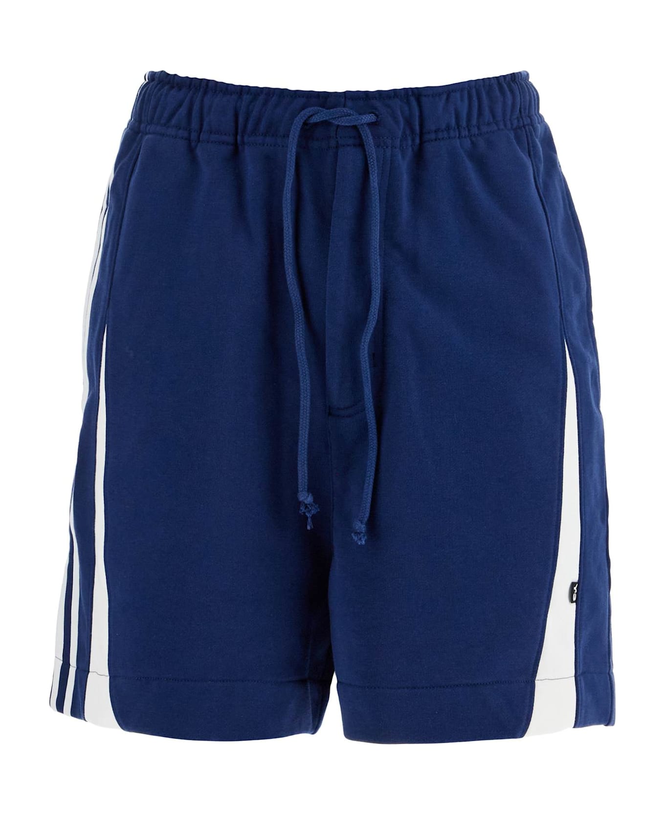 Blue Cotton Shorts With Side Stripes
