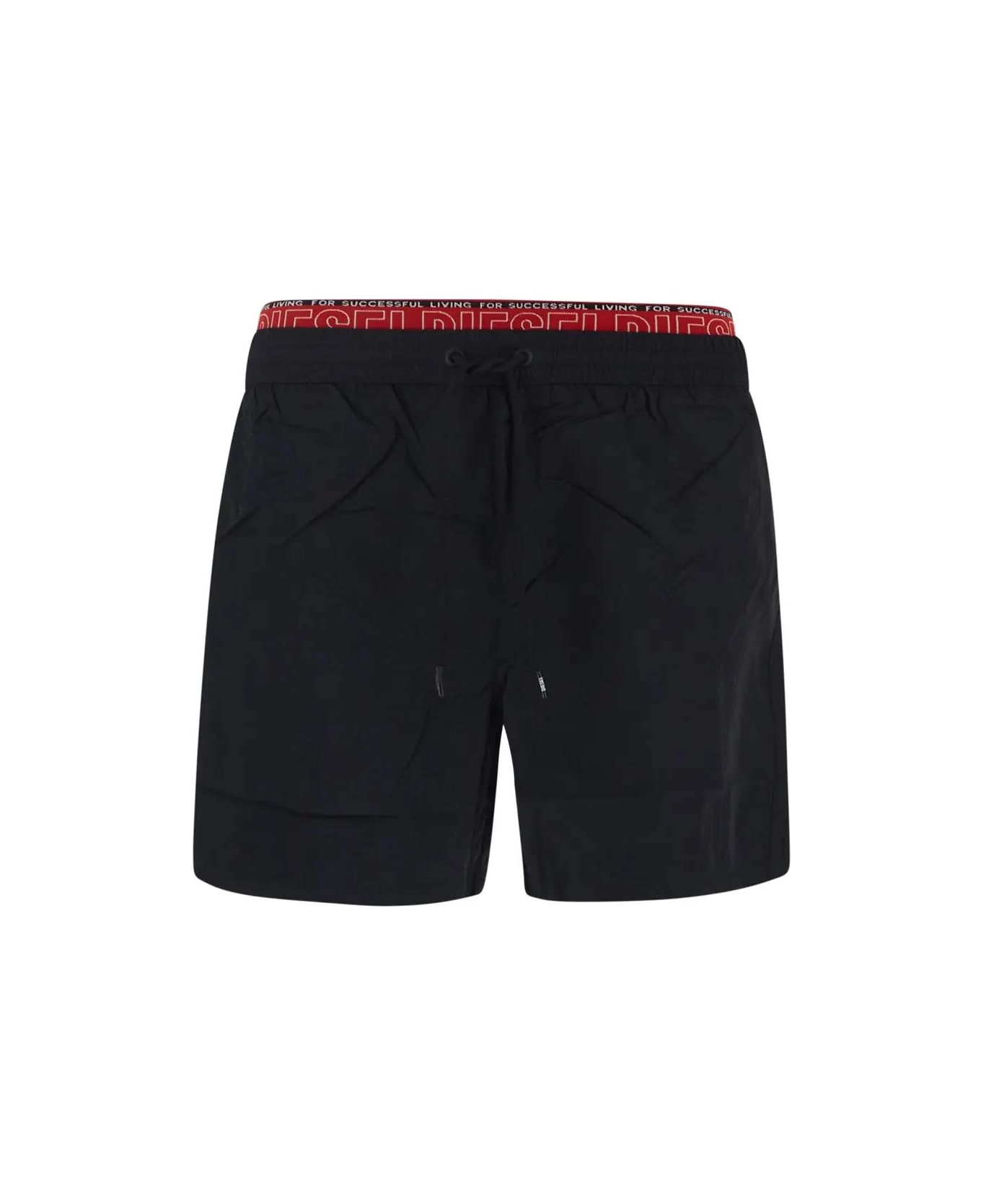 Diesel Dolphin boxer shorts in black polyamide with elasticated waistband, drawstring, a back patch pocket with velcro closure and rubber logo tab, mid-length and contrasting elastic waistband with logo. Composition: 100% Polyamide Composition: 100% Pa+elastic, 57% Pa, 29% Pl, 14% Ea