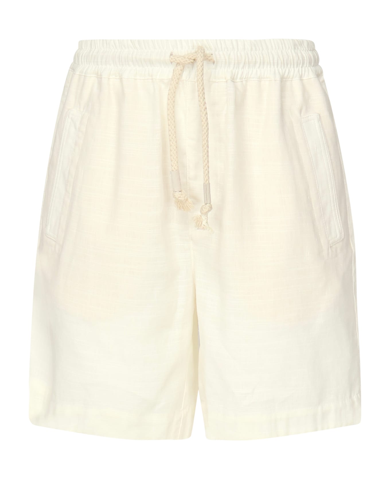 -Bermuda shorts with drawstrings -Elastic waist -Size shown in photo is L -Made in Italy -Color: White Composition: 100% Linen