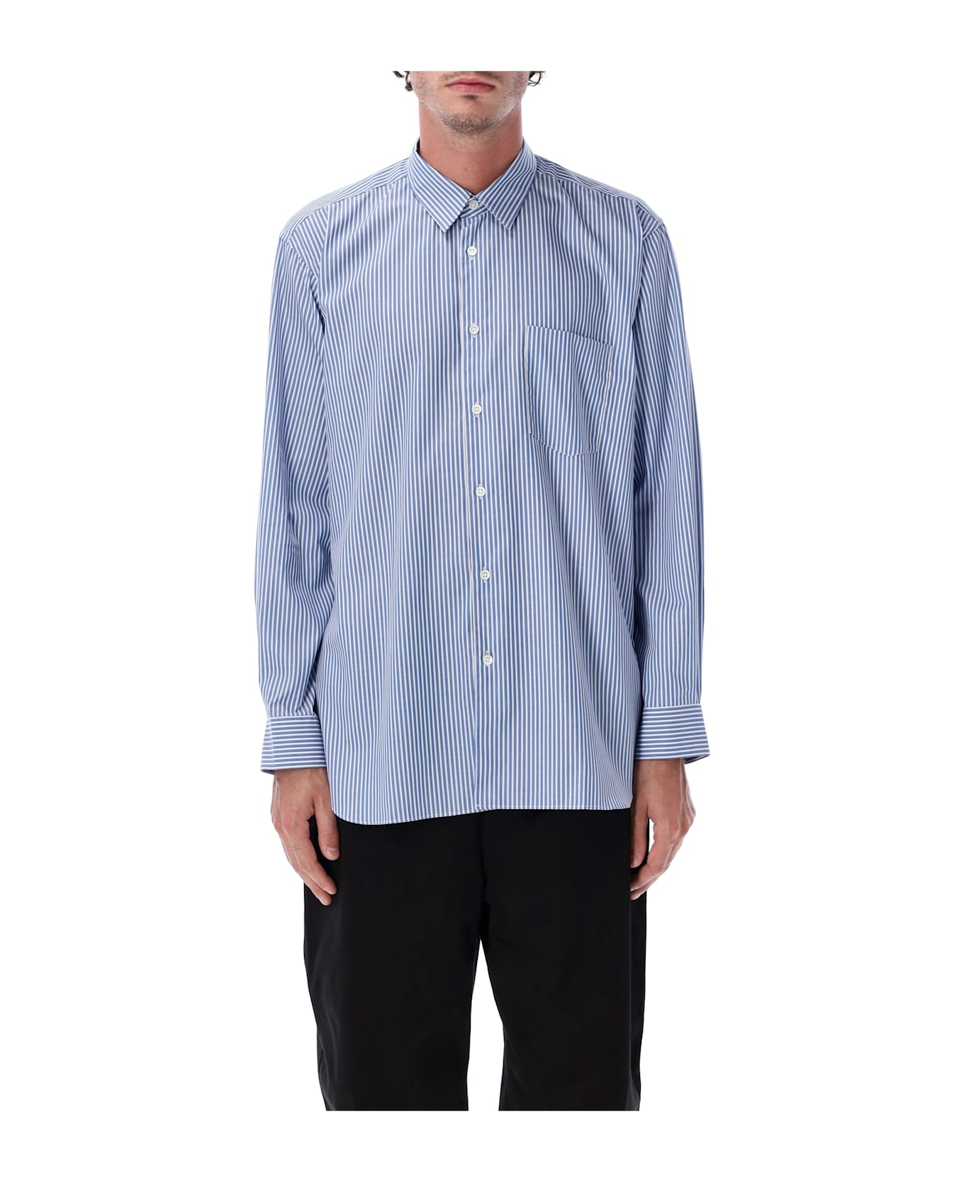 This Comme Des Garçons Shirt Design Is Tailored From Pure Cotton And Elevated With A Refined Striped Pattern. Featuring A Pointed Collar, Button Closure, Chest Pocket, And Long Sleeves With Buttoned Cuffs, It Balances Classic Shirting Codes With A Relaxed Silhouette. Lightweight And Breathable, It Is A Versatile Essential That Adapts Easily To Both Casual And More Formal Styling. Striped Pattern
