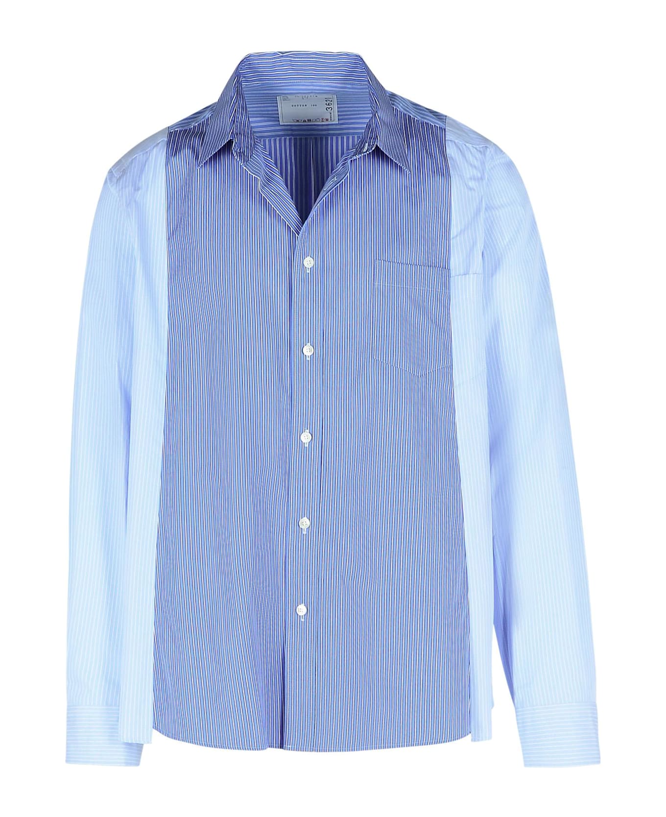 Tone-on-tone collar, button closure, contrast striped patterns, buttoned cuffs, front pocket