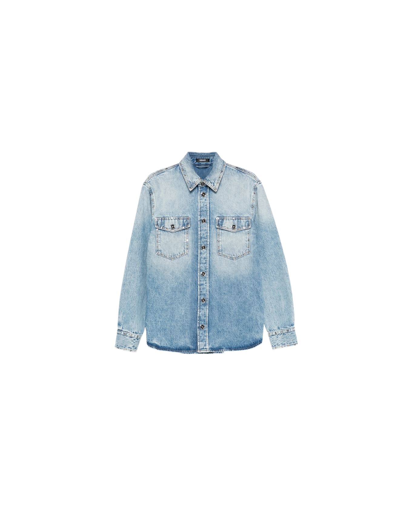 light blue studded embellishment button fastening chest pockets long sleeves buttoned cuffs