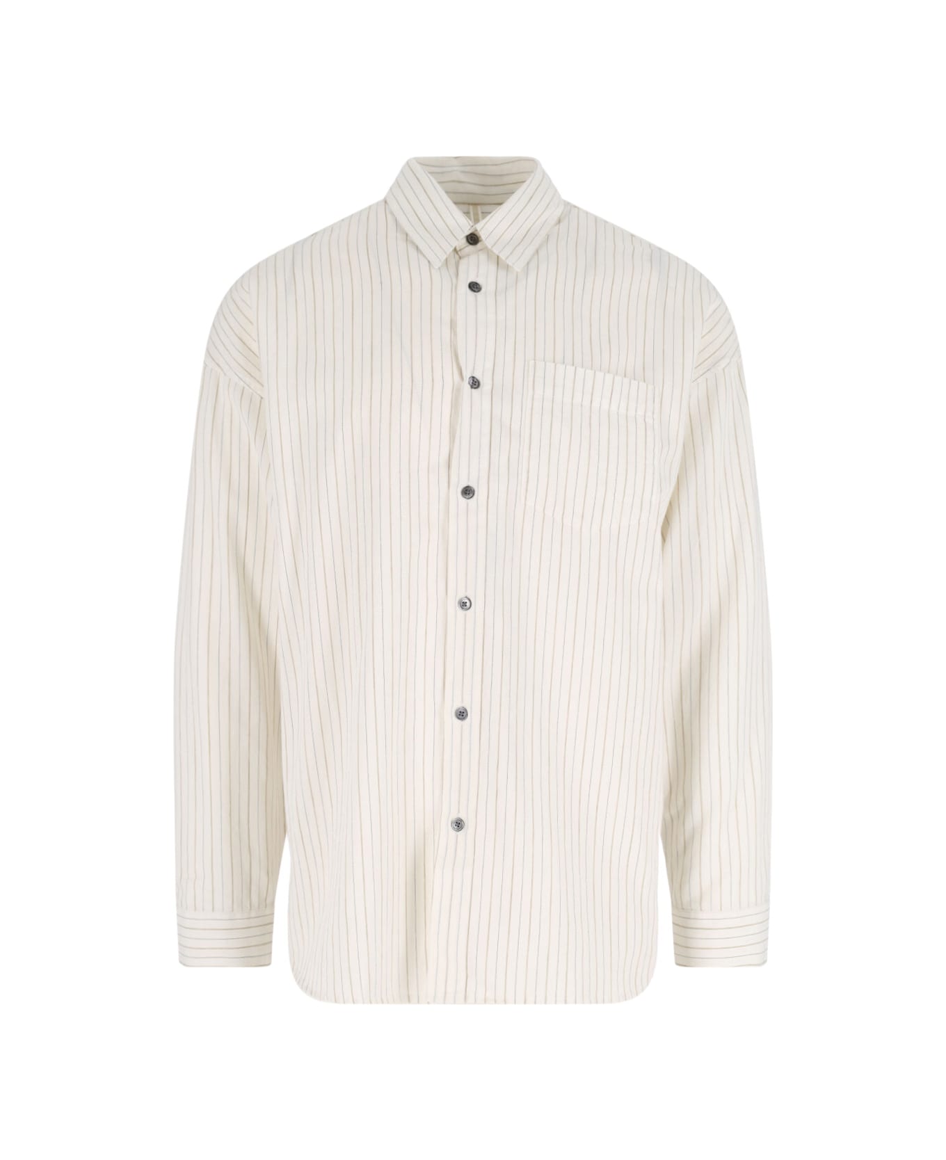Sunflower 'Stable' striped shirt in cream cotton and wool with stripe pattern, classic collar, mother-of-pearl button closure, chest pocket, button cuffs, straight hem.