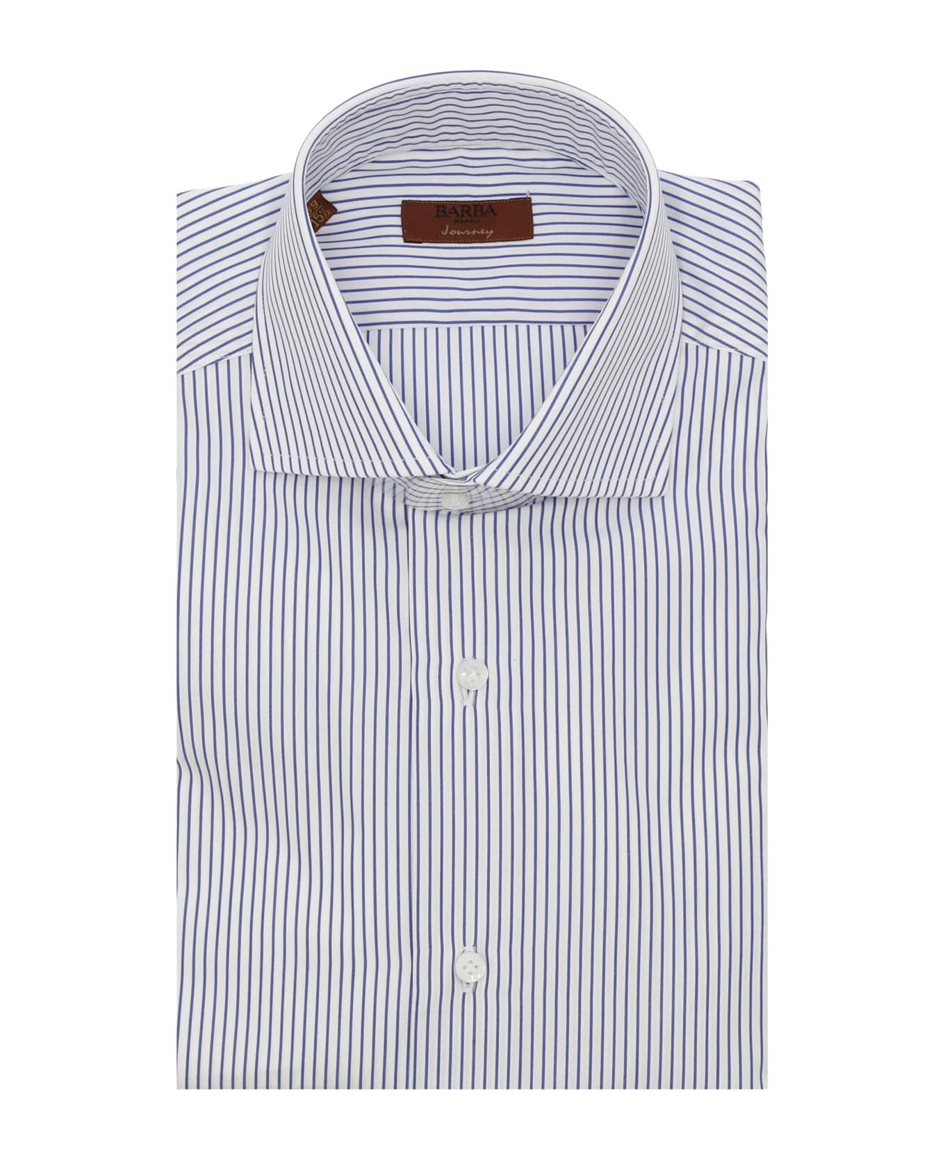 - Blue Barba cotton shirt for man - Collar - Long sleeves with buttons at cuffs - Front buttons fastening - Tone on tone logoed patch at hem - All-over contrasting color striped motif