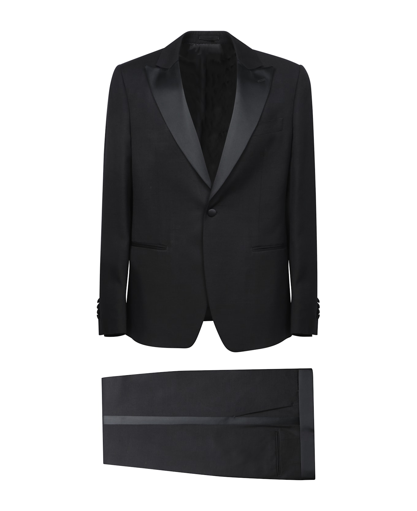 This elegant Lardini tuxedo is crafted in fine black silk, offering a sophisticated tailored fit. Perfect for formal occasions, it features a classic design with modern detailing.