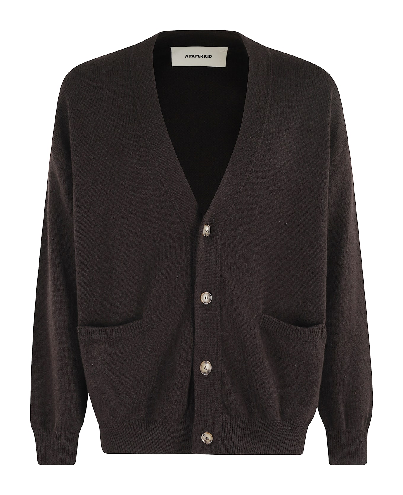 Cardigan -A Paper Kid -Brown color -V-neck -Long sleeve -Center button closure -Front pockets