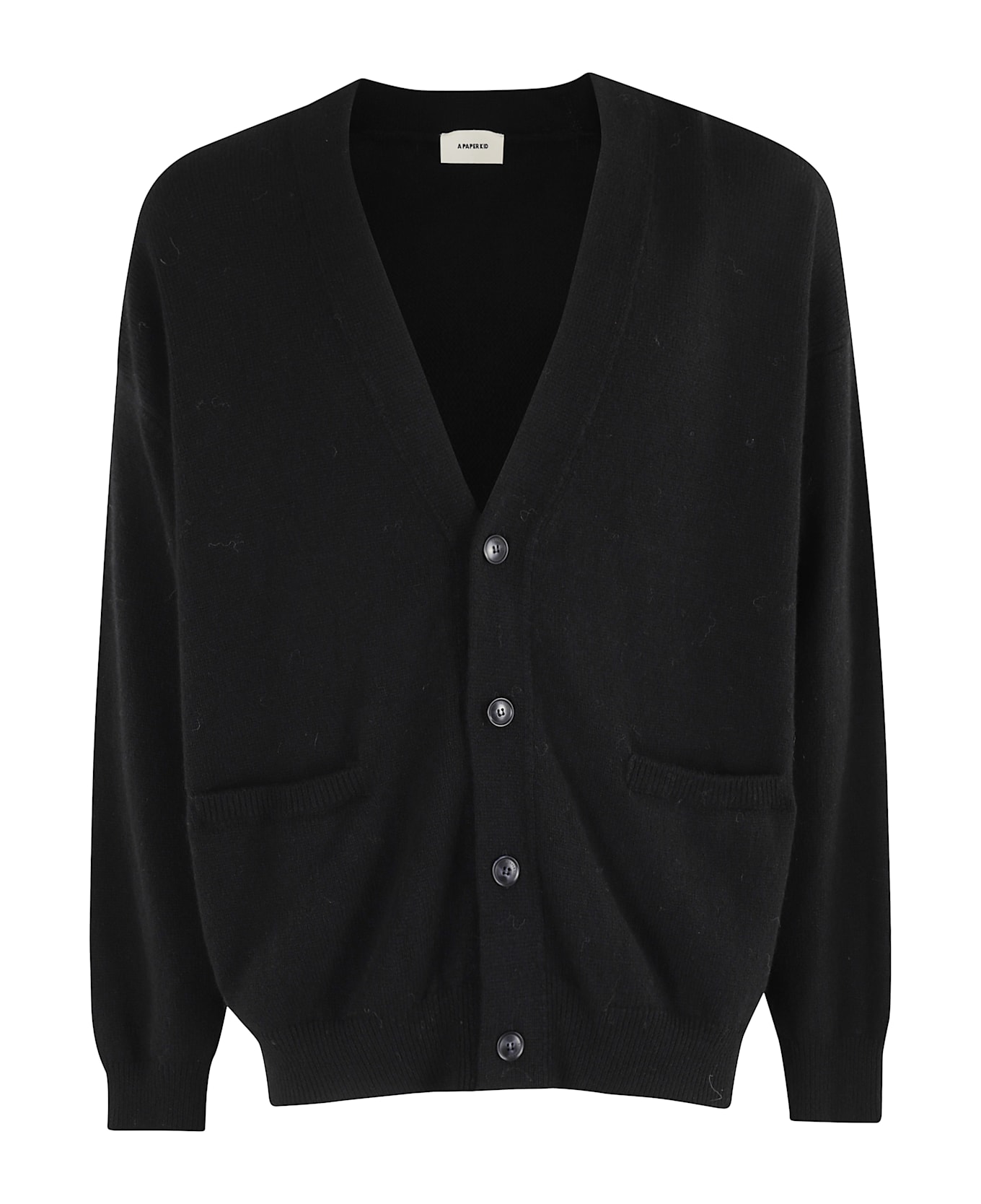 Cardigan -A Paper Kid -Black color -V-neck -Long sleeve -Center button closure -Front pockets
