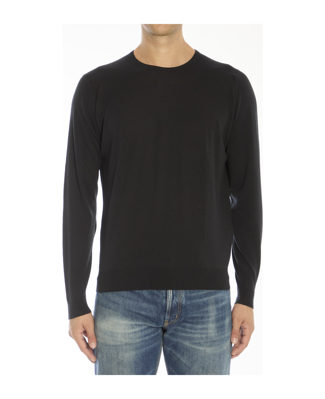 Long-sleeved crewneck Lundy pullover in black merino wool. Ribbed collar, cuffs and hem. Regular fit.