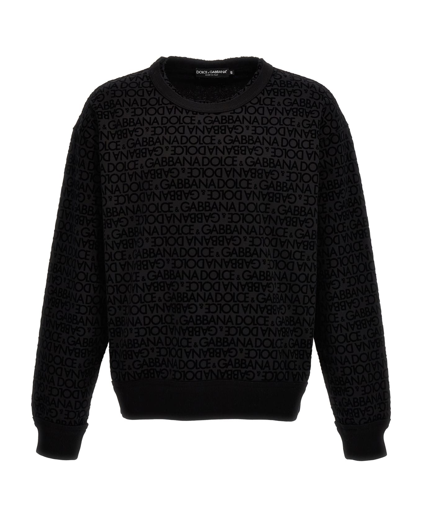 Cotton sweatshirt with all-over flocked logo, crewneck model.