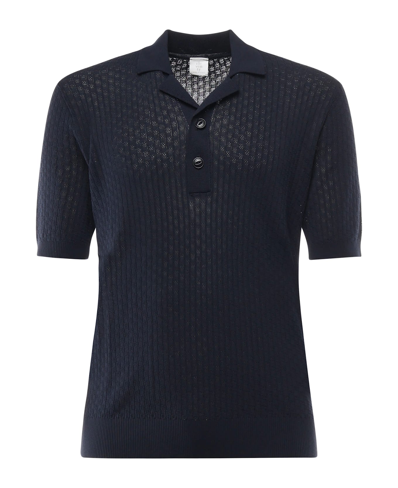 -Cotton polo shirt with weave -Short sleeves -Two button placket -Collar -Size shown in photo is M -Made in Italy -Color: Blue
