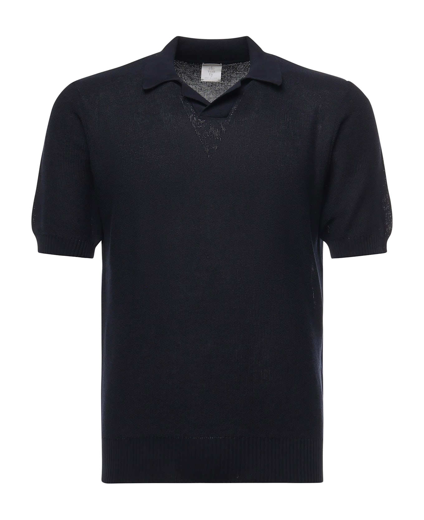 -Made of cotton -Ribbed hem and cuffs -Bowling collar -Short sleeves -Regular fit -The size shown in the photo is S -Made in Italy -Color: Blue