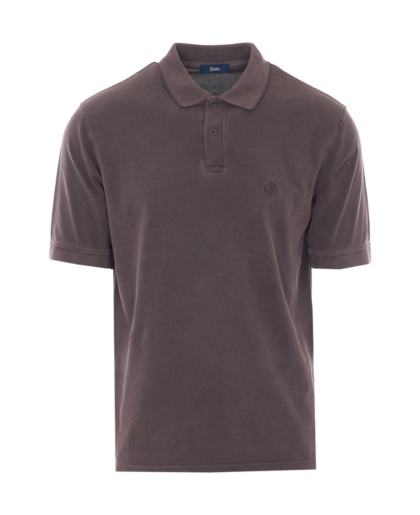 Herno deep brown polo, crewneck, buttons closure, embroidered logo on front, tone sur tone Composition: 100% Cotton