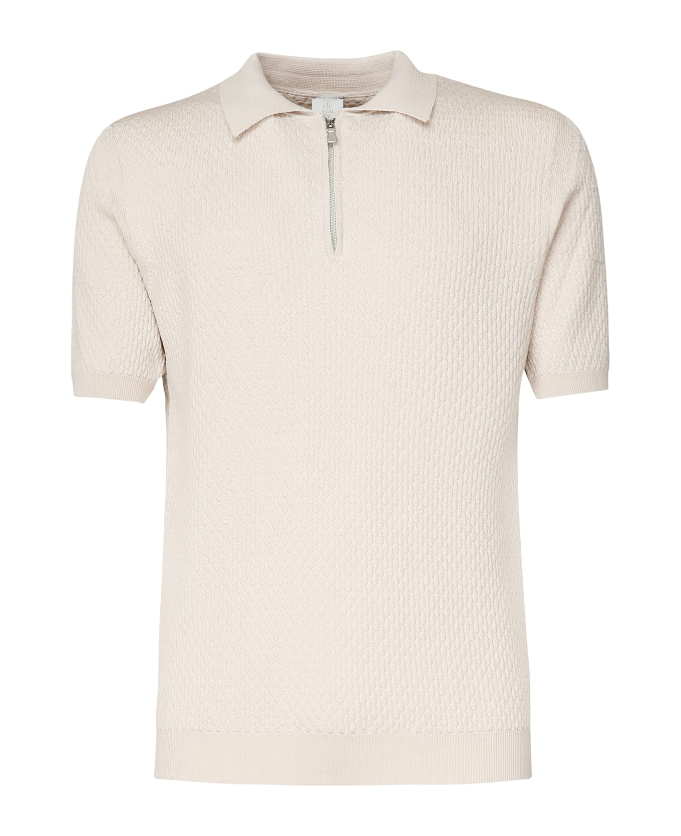 -Polo shirt with zip closure -Short sleeves -Straight hem -Size shown in photo is M -Made in Italy -Colour: Sand Composition: 70% Merino Wool, 30% Silk