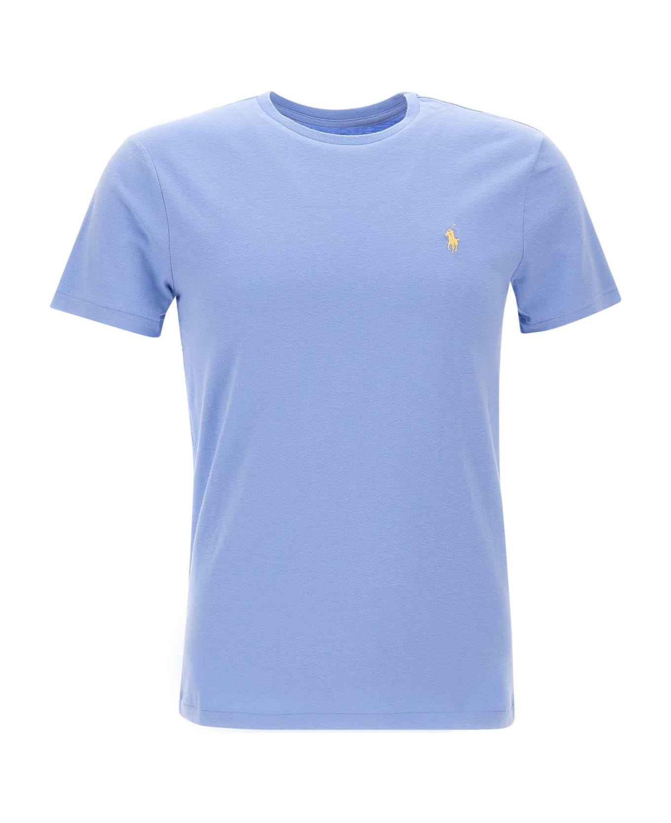 Polo Ralph Lauren man Cotton T-Shirt. Lilac. Ribbed crewneck. Short sleeves. Signature yellow pony embroidered to left chest. Custom Slim-Fit, a shaped silhouette, halfway between the Classic-Fit and Slim-Fit models. Sleeve wraps around bicep. Fitted at waist.