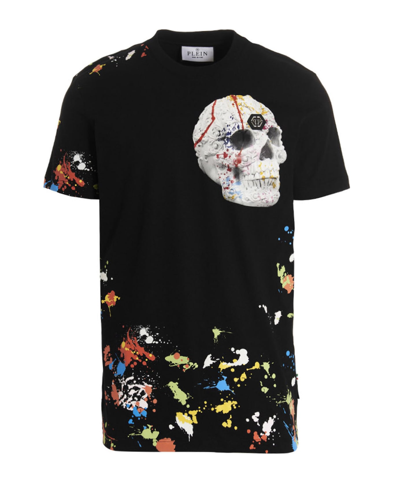 Dripping Skull cotton, crewneck t-shirt with an all over print, a front logo appliqué, and short sleeves.