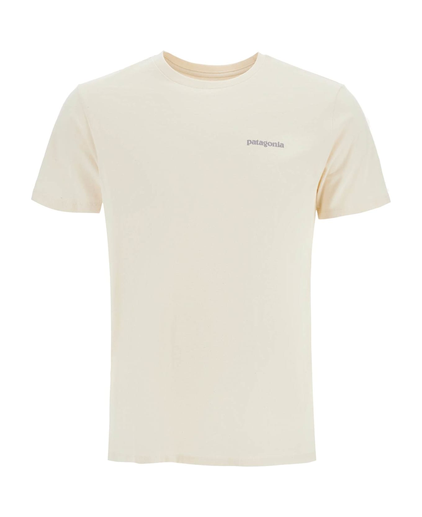 This Patagonia crew neck t-shirt is made from a blend of recycled cotton fibers and features a logo print on the chest and an applique on the right sleeve. It has a regular fit and the model is 182 cm tall, wearing a size M.