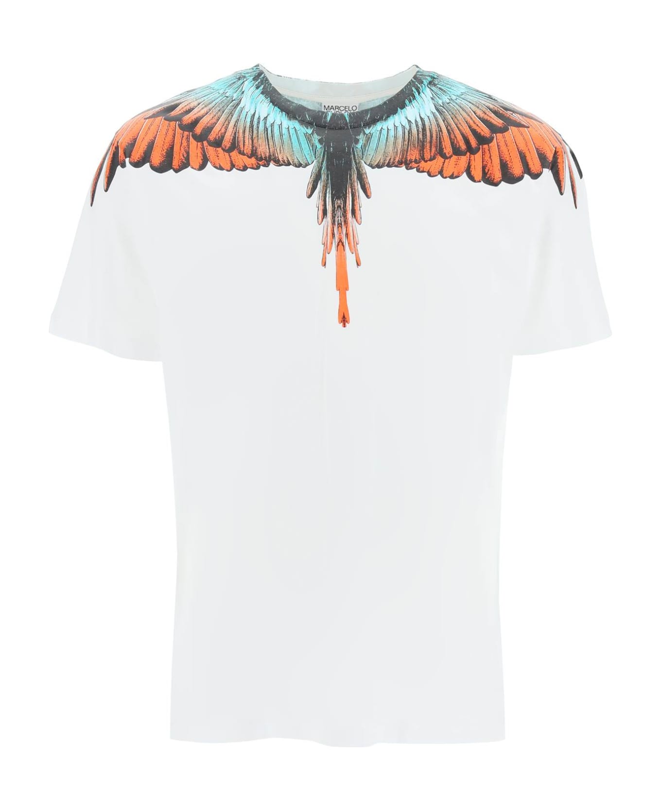 Marcelo Burlon short-sleeved t-shirt in cotton jersey, enriched by Icon Wings motif printed at neck and shoulders. Regular fit. The model is 187 cm tall and wears a size L.