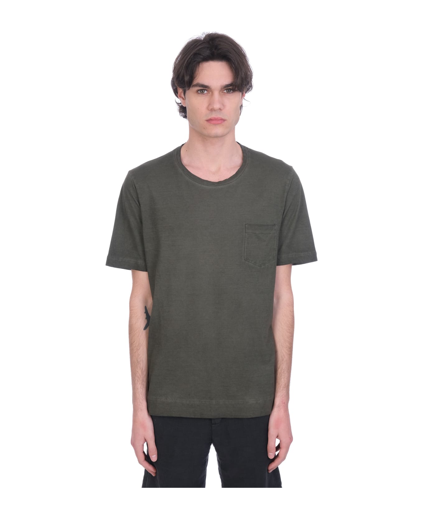 Panarea T-Shirt in green cotton, round neck, short sleeves, breast pocket, 100% cotton, Model is 190 cm and wears size L Composition: Cotton