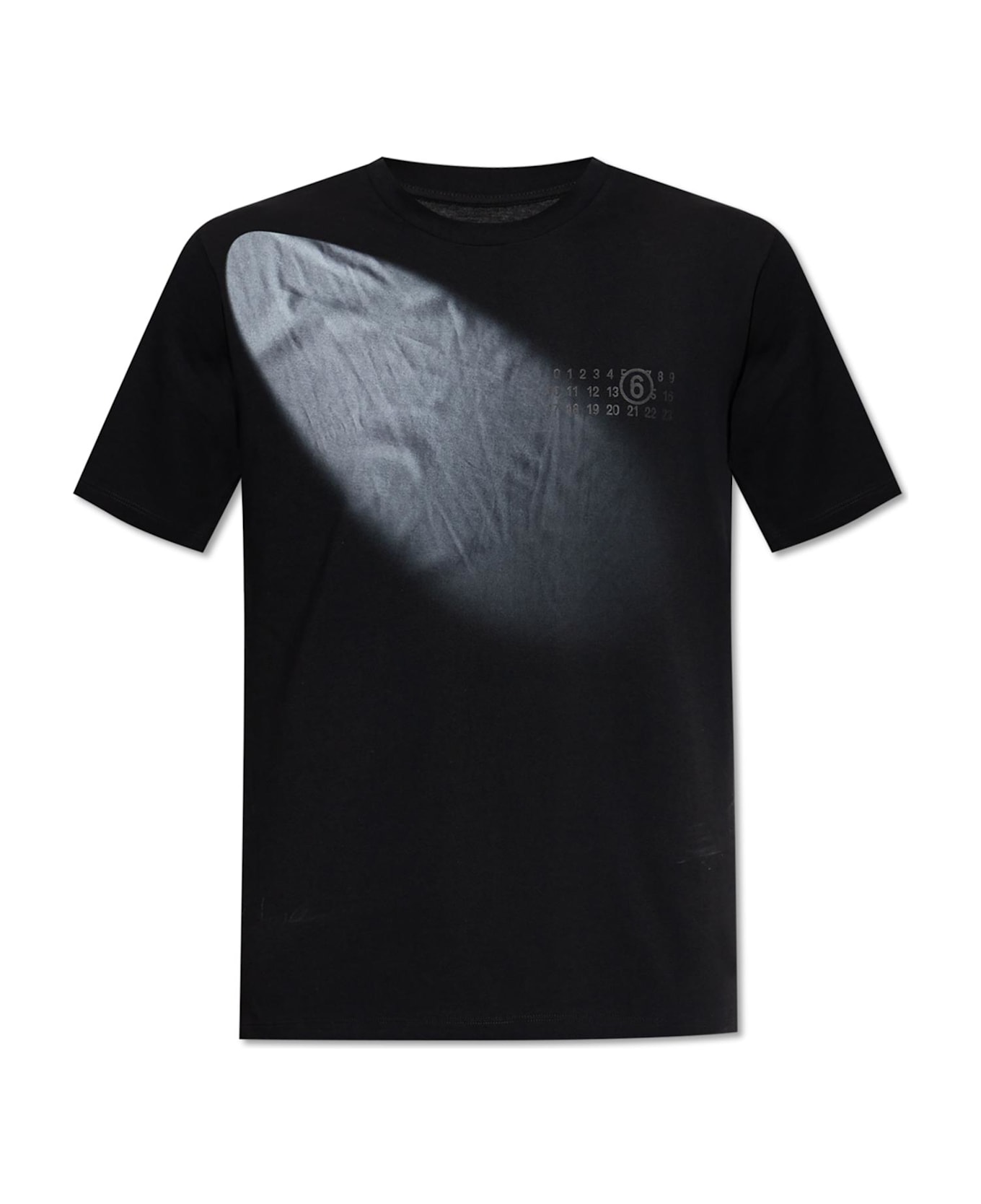 Elevate your everyday wardrobe with this exquisite black T-shirt from MM6 Maison Margiela, a refined embodiment of contemporary sophistication. Expertly crafted from smooth, high-quality cotton, the fabric feels luxuriously soft yet opaque, ensuring supreme comfort and a distinguished silhouette. The classic crew neck and short sleeves create a timeless, relaxed profile, seamlessly blending understated elegance with subtle flair. The most captivating detail lies in the unique print at the upper left chest: a distinctive sequence of numbered digits, elegantly arranged, with the number 6 encircled for emphasis serving as a subtle homage to the brand's conceptual ethos. This thoughtful design not only highlights exclusive craftsmanship but also aligns with Margiela's renowned avant-garde aesthetic. Why choose this product? Premium, non-sheer cotton fabric for exceptional comfort and durability Signature numbered print, exclusive to MM6 Maison Margiela collections Timeless crew neck cut for versatile style Discreet yet unmistakable designer detailing