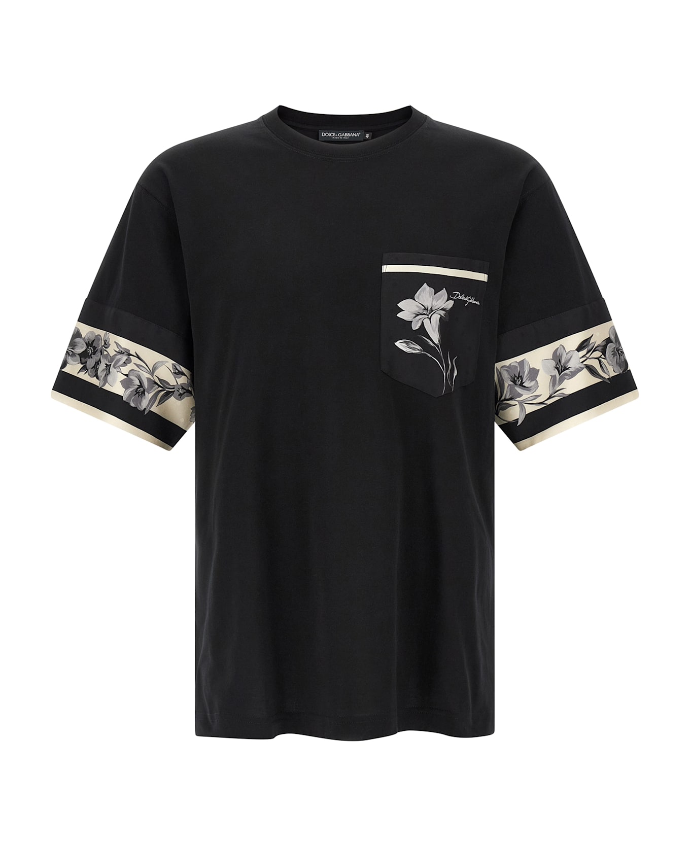 Light cotton jersey T-shirt with 'Bouquet' print silk twill details, breast pocket, crew neck, long sleeves with insert and dropped shoulders. The differences in print placement you might find on this product is a characteristic of Dolce&Gabbana's Handmade products. A peculiarity that makes each garment or accessory unique and exclusive.