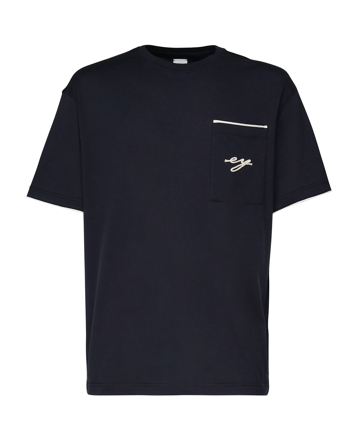-Cotton T-shirt -Short sleeves -Pocket with embroidery -Size shown in photo is M -Made in Italy -Colour: Blue