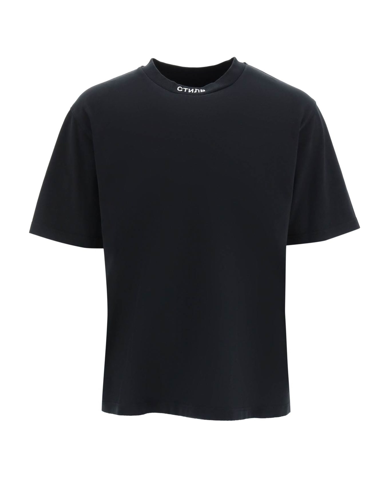 Heron Preston crew neck t-shirt made of compact organic cotton jersey, detailed with CTNMB embroidery on the neck. Logo label on the back, oversized fit. The model is 187 cm tall and wears a size L. Composition: 100%CO