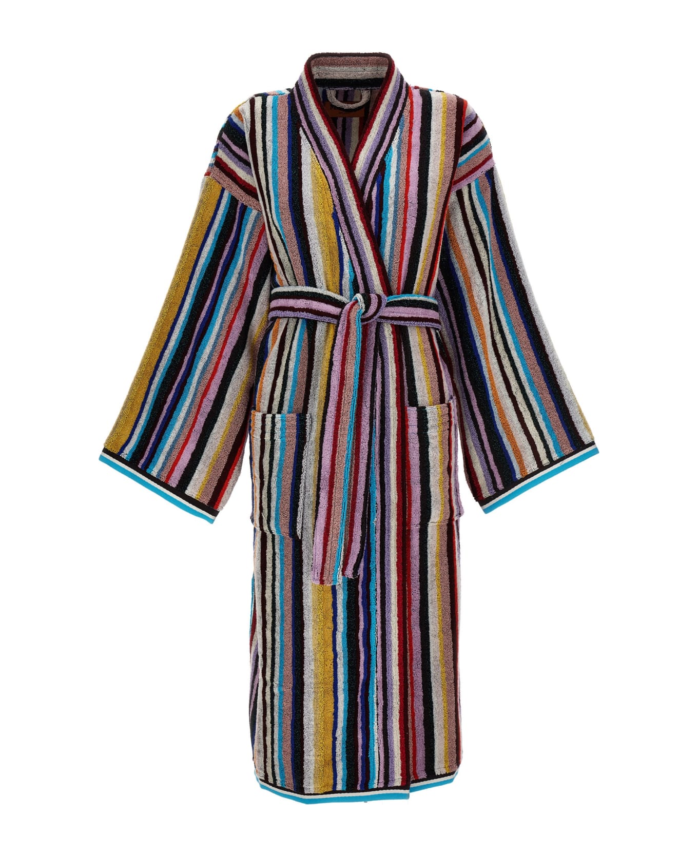 Chandler' striped cotton terry cloth bathrobe with lurex thread, belt and pockets.