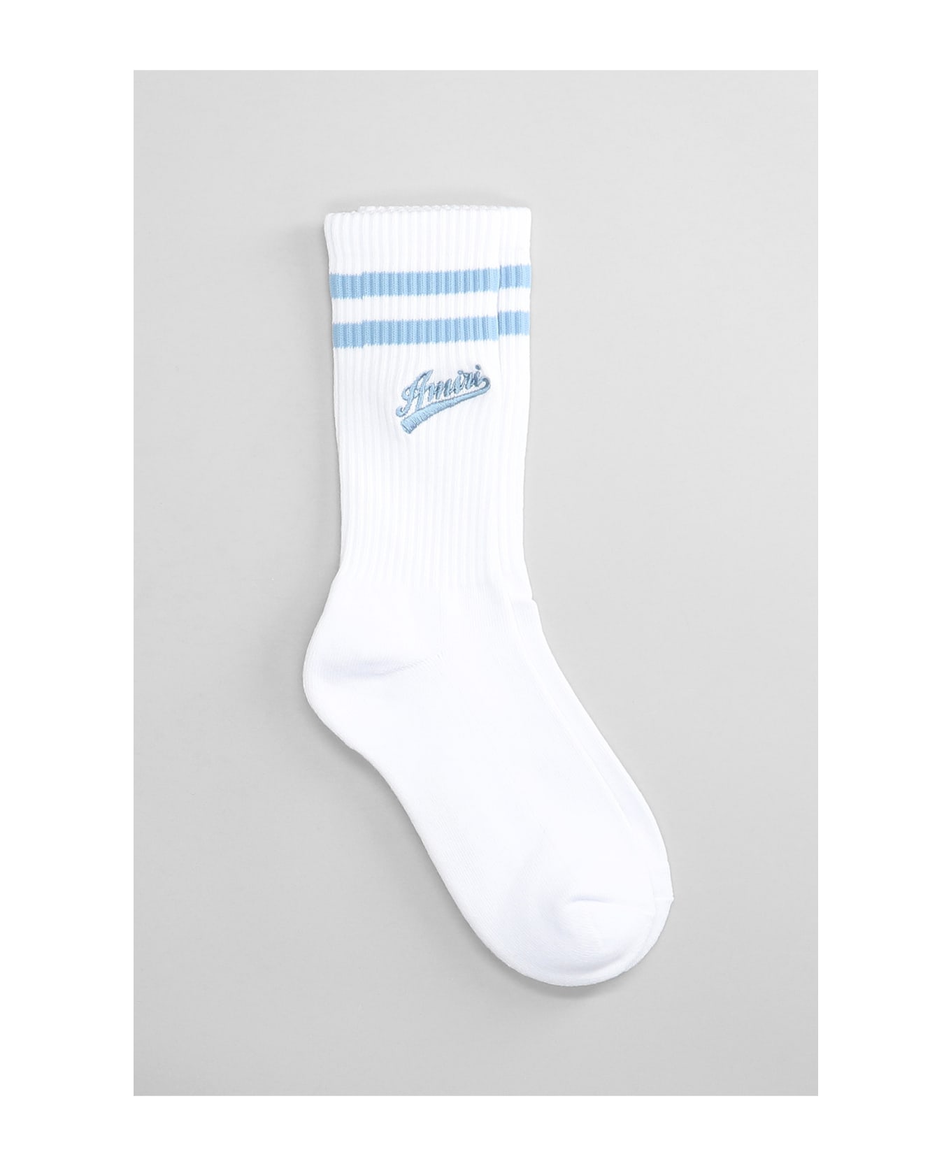 Socks in white cotton, stripes motif, ribbed knit, logo printed
