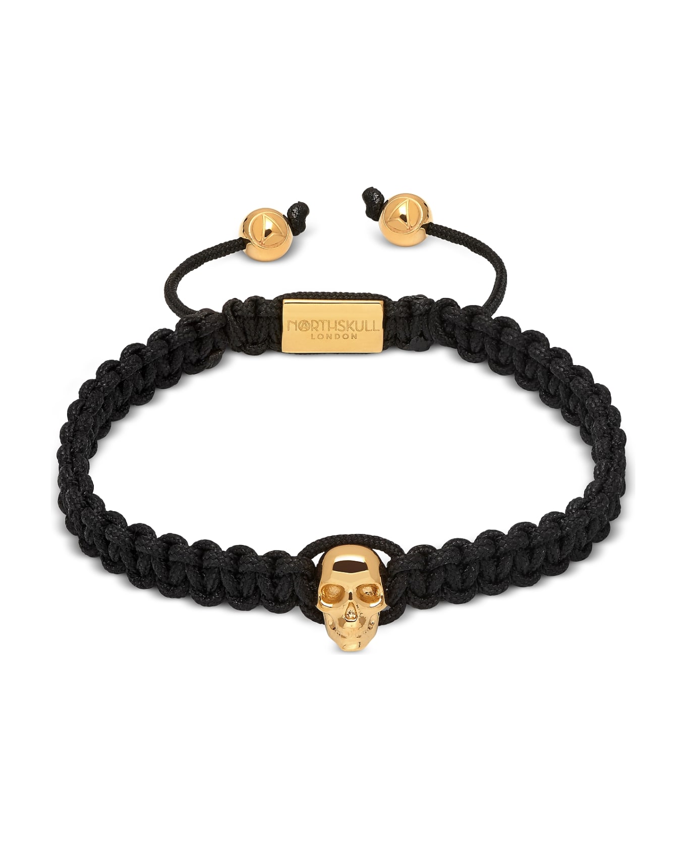 Northskull Atticus Skull Macramé Bracelet In Black And Yellow Gold