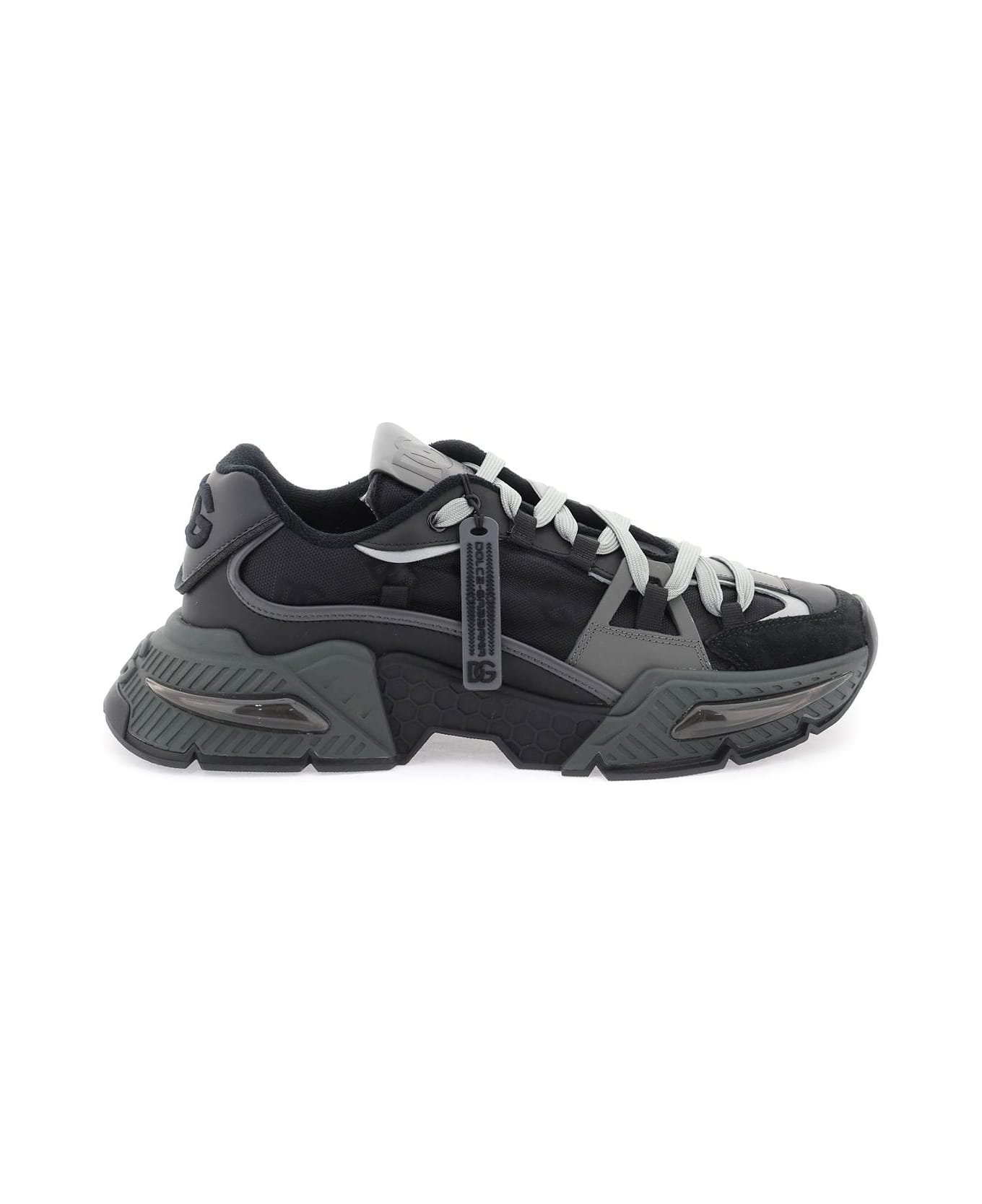 Airmaster sneakers by Dolce & Gabbana crafted in cordura with DG logo and smooth leather and suede inserts. DG logo embroidery on the heel tab, leather label with contrasting logo print on tongue and removable rubber tag with micro-injection logo. Lace-up closure, terry lining, removable leather insole, rubber sole with embossed logo at back.