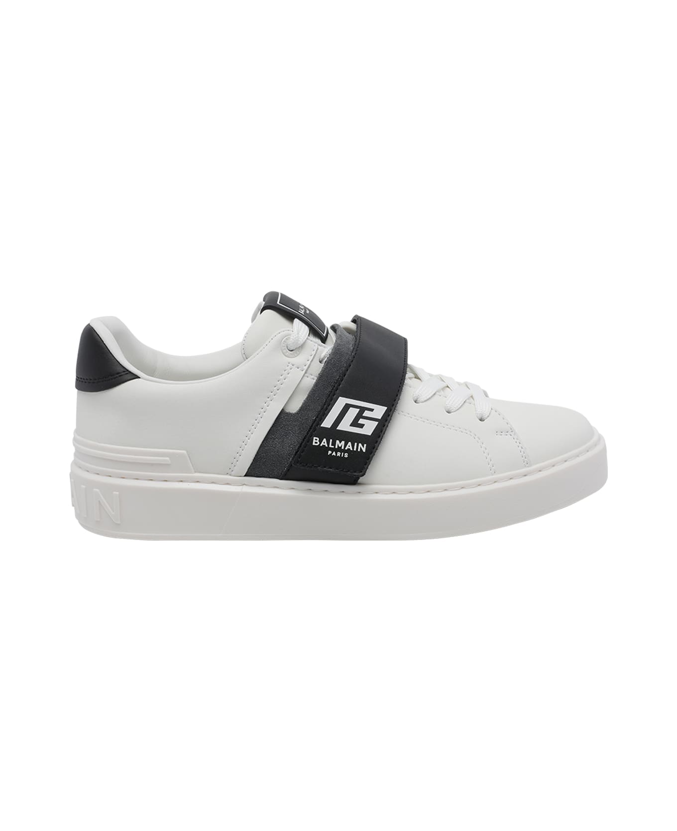 Balmain white B-Court sneakers, round toe, lateral velcro closure, leather model